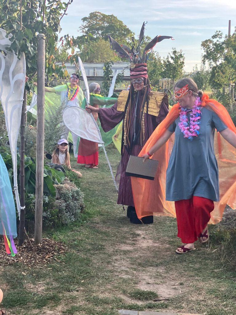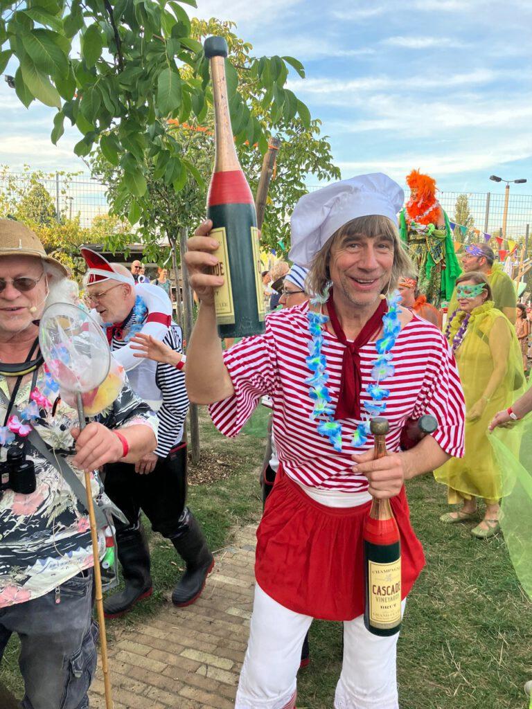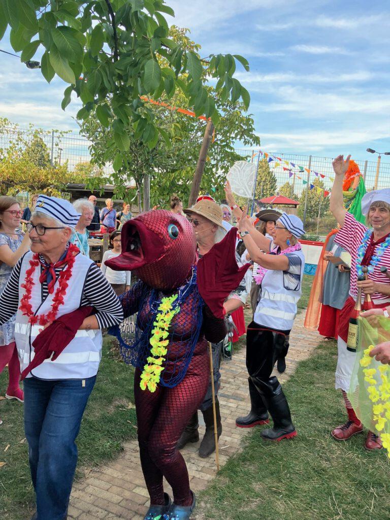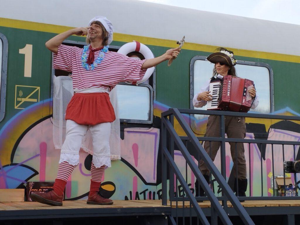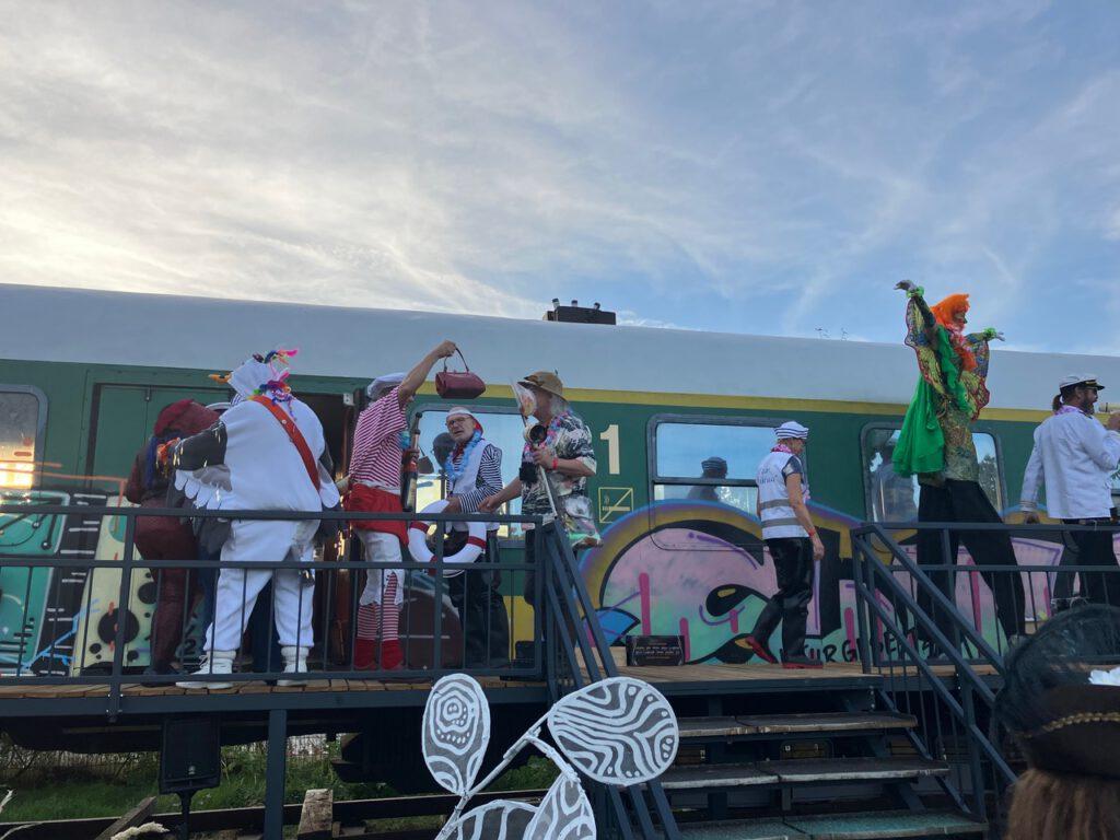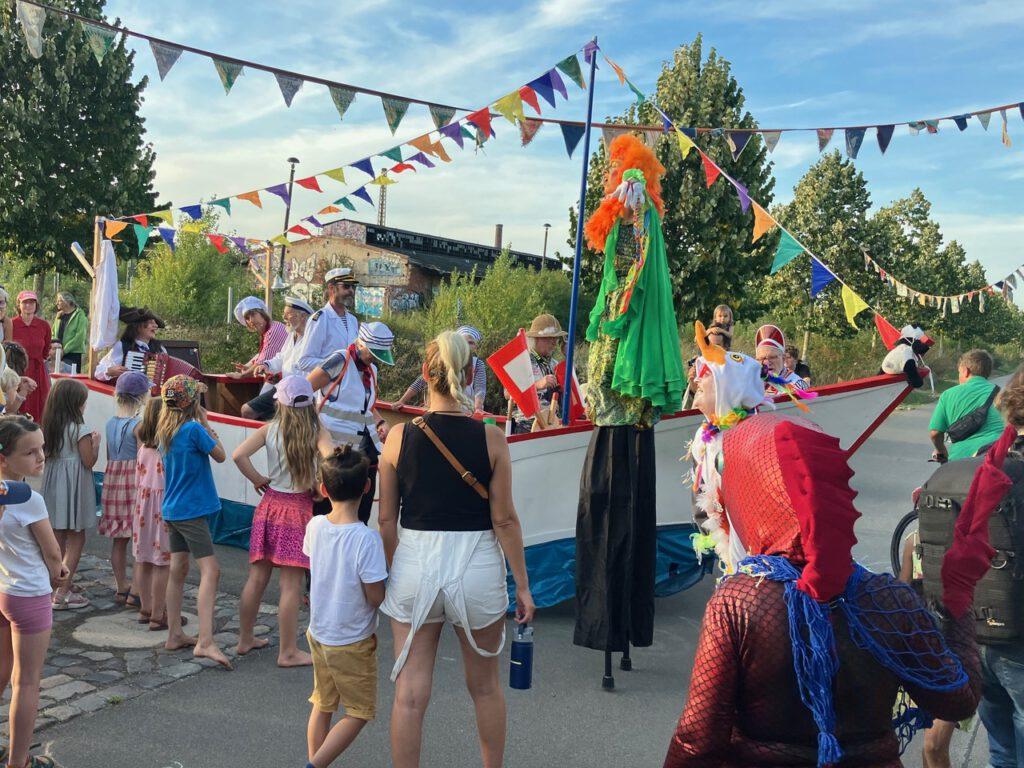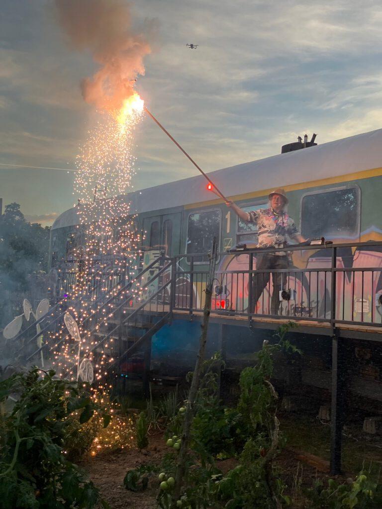 Wir können auch Spielen und es hat ungeheure Freude gemacht. Am Samstag den 20.09.2025 landete auf dem Bürgerbahnhof Plagwitz ein Schiff. Bei der musikalisch-performative Inszenierung im Paradies, die mit einer Expedition und einen wahrhaftigen Landgang im Hildegarten erfolgte, waren ca. 120 Gäste anwesend. Die Einweihung des Wagons wurde mit einem spektakulären Feuerwerk gefeiert.
