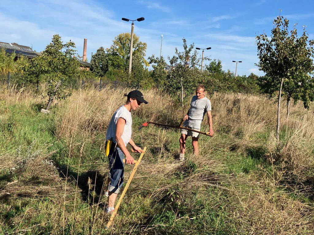Wir hatten am Samstag den 20.09.2025 wieder einen Arbeitseinsatz im Obstgarten Plagwitz und wir ihr sehen könnt, neben dem Feiern müssen wir auch Arbeiten. Danke an Ekkehard unseren Sensenmeister, Aleksandra, Arthur und Michael für die gelungene Handarbeit. Neben den Zauneidechsen, die wir eher an schattigen Tagen auf der Wiese finden, hat uns heute eine Gottesanbeterin besucht. Über solche Gäste freuen wir uns immer wieder auf dem Bürgerbahnhof Plagwitz.