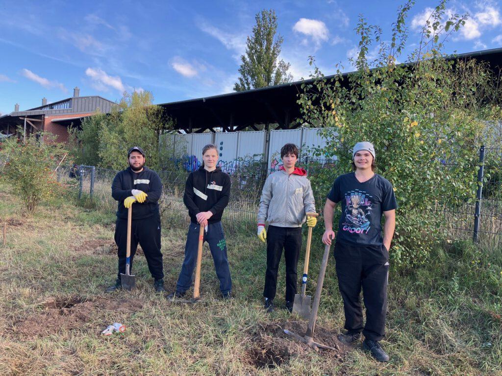 Wir hatten am Mittwoch, den 24.September handfesten Besuch von 20 Jugendlichen auf dem Bürgerbahnhof Plagwitz. Eine Orientierungsgruppe der „Joblinge“ von jungen Menschen mit Fluchterfahrung haben Gemeinwohl orientierte Projekte wie den Gemeinschaftsgarten Hildegarten, unser Kulturcafé Heiter bis wolkig und den Obstgarten kennengelernt und bei Arbeitseinsätzen mit angepackt.
