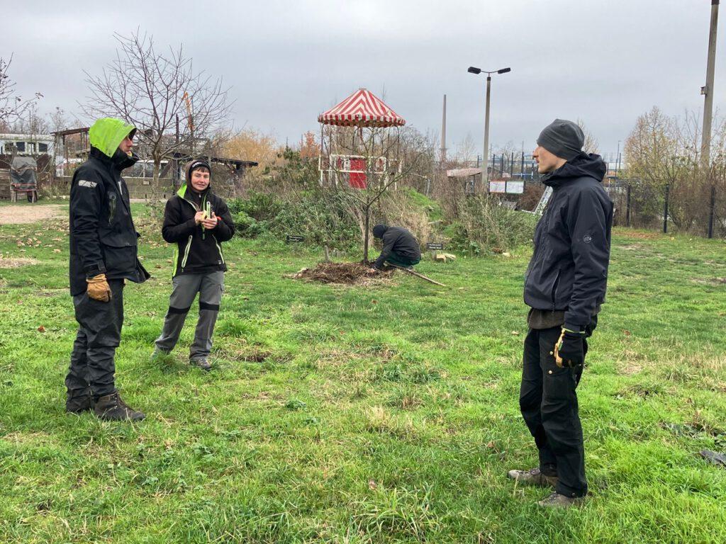 Wir hatten am Mittwoch, den 21.Mai handfesten Besuch auf dem Bürgerbahnhof Plagwitz und natürlich auch im Obstgarten. Eine Orientierungsgruppe der Joblinge von jungen Menschen mit Fluchterfahrung haben Gemeinwohl orientierte Projekte wie den Bauspielplatz, den Hildegarten, Heiter bis wolkig und den Obstgarten kennengelernt und bei Arbeitseinsätzen angepackt