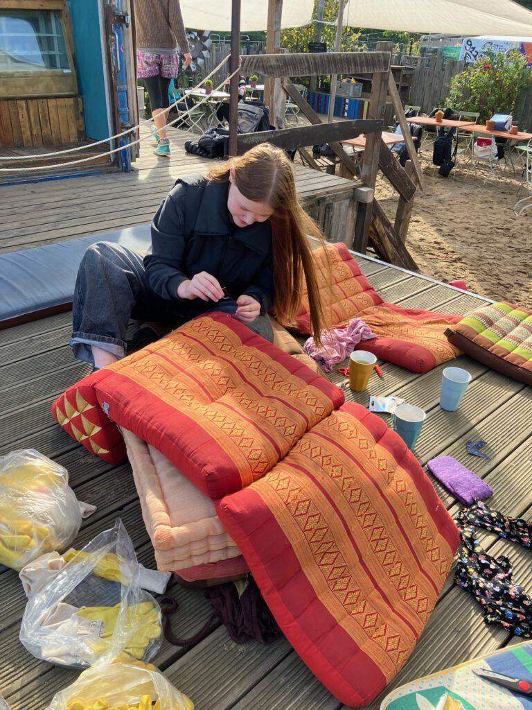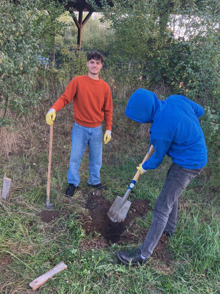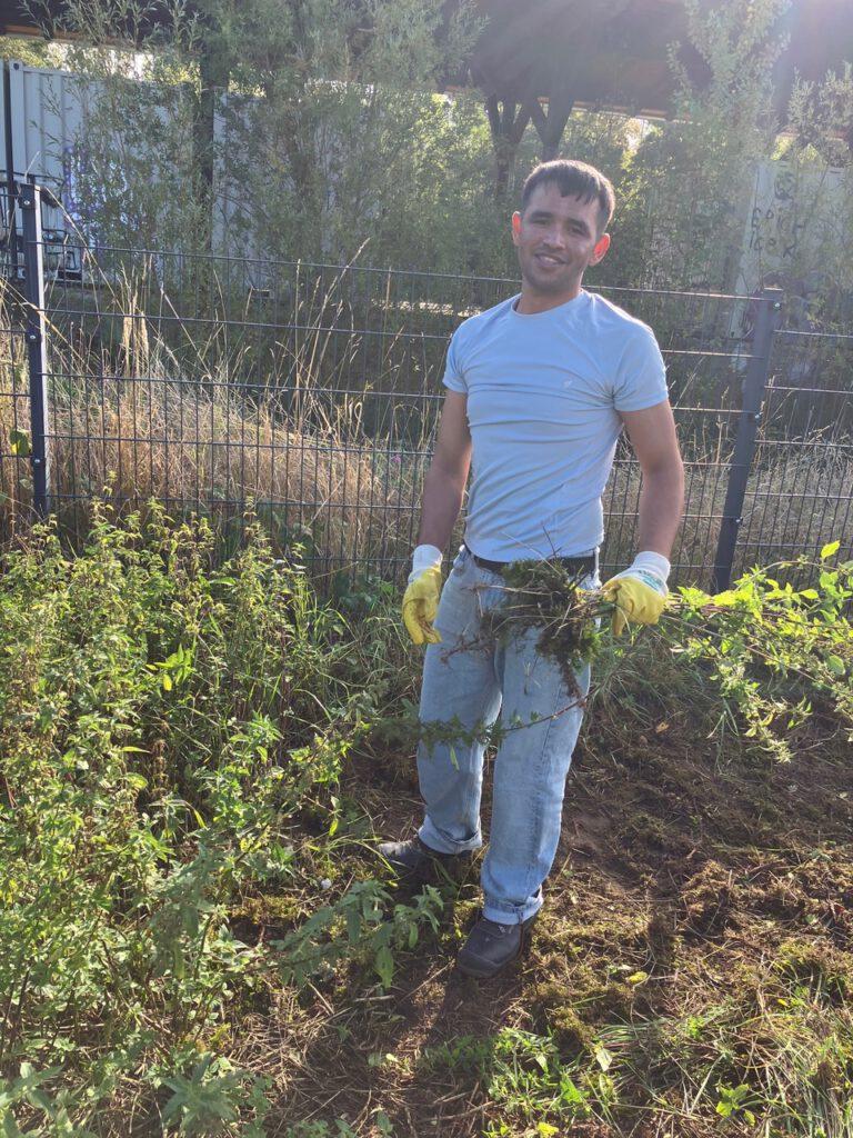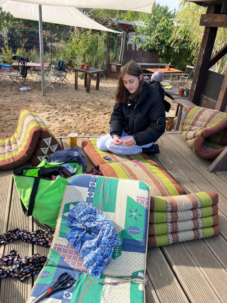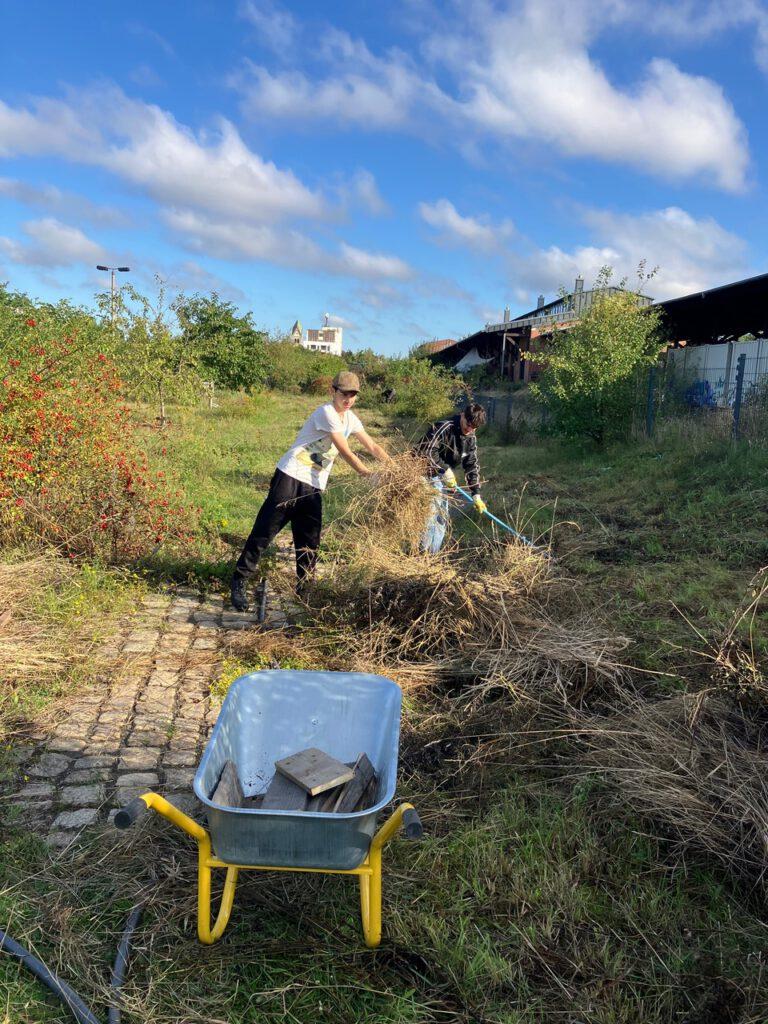 Wir hatten am Mittwoch, den 24.September handfesten Besuch von 20 Jugendlichen auf dem Bürgerbahnhof Plagwitz. Eine Orientierungsgruppe der „Joblinge“ von jungen Menschen mit Fluchterfahrung haben Gemeinwohl orientierte Projekte wie den Gemeinschaftsgarten Hildegarten, unser Kulturcafé Heiter bis wolkig und den Obstgarten kennengelernt und bei Arbeitseinsätzen mit angepackt. Im Obstgarten wurden Pflanzlöcher mit Hacke und Spaten für die neuanzulegende Hecke vorbereitet, im Café wurden die Bezüge mit Nadel und Faden gestopft und im Hildegarten bauten die jungen Menschen eine Heißrotte. Danke an Katja, Hella, Tina, Aleksandra und Michael vom Team der Nutzergruppen.