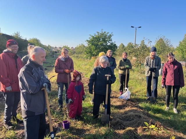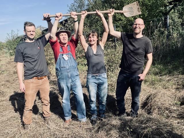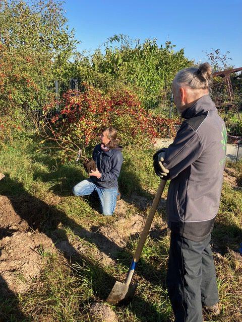 Wir haben es gemacht und 46 Sträucher in unseren Obstgarten am 3.10.2025 mit 30 Personen gepflanzt und das bei besten „Einheitswetter“. Wir sagen danke an die Initiative „Leipzig Pflanzt“ und die Obstgenossen Aleksandra, Michael, Arthur, und die beiden Sebastians, die Joblinge sowie an Sabine und Matthais vom Salviagarten. Wir hatten auch einfach Gäste, die uns über die Schulter schauten und begeistert sind, das wir was Konkretes an diesen Tag für unsere Natur machen.